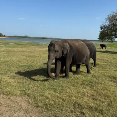 Later that day, we embarked on a safari at Minneriya National Park, home to one of the largest gatherings of wild elephants in Asia. We spotted over 100 elephants, many up close, grazing and splashing in the water. Watching these gentle giants roam freely in their natural habitat was a highlight for everyone.