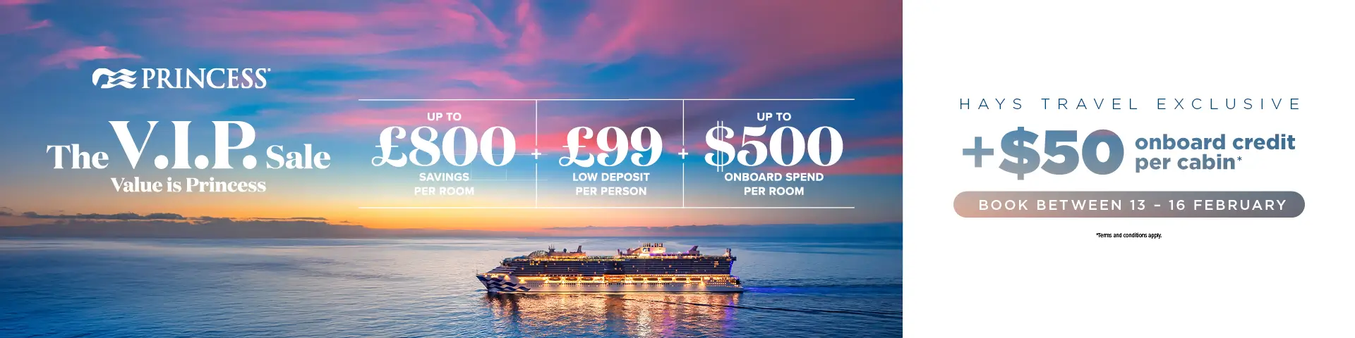 There’s a world of wonder waiting beyond the horizon, and it’s best discovered hand in hand, especially when there is exclusive onboard credit, savings of up to £800 per stateroom, deposits from just £99pp, plus an extra $50 onboard credit when you book between 13–15 February with Hays Travel.