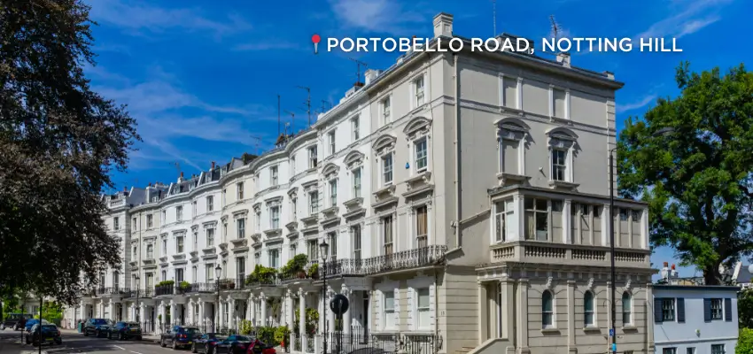 Notting Hill turns one of London’s most characterful neighbourhoods into a modern fairy tale, rooted firmly in place. Stroll along Portobello Road, where colourful townhouses and market stalls frame the film’s most memorable moments, or pause outside The Travel Bookshop, the inspiration for William’s world. Nearby streets like Lansdowne Crescent and St Luke’s Mews capture the area’s postcard charm, while the leafy calm of Rosmead Gardens offers a quieter contrast. It’s a corner of London where romance feels unforced, everyday life takes centre stage, and the city shows its softer side.