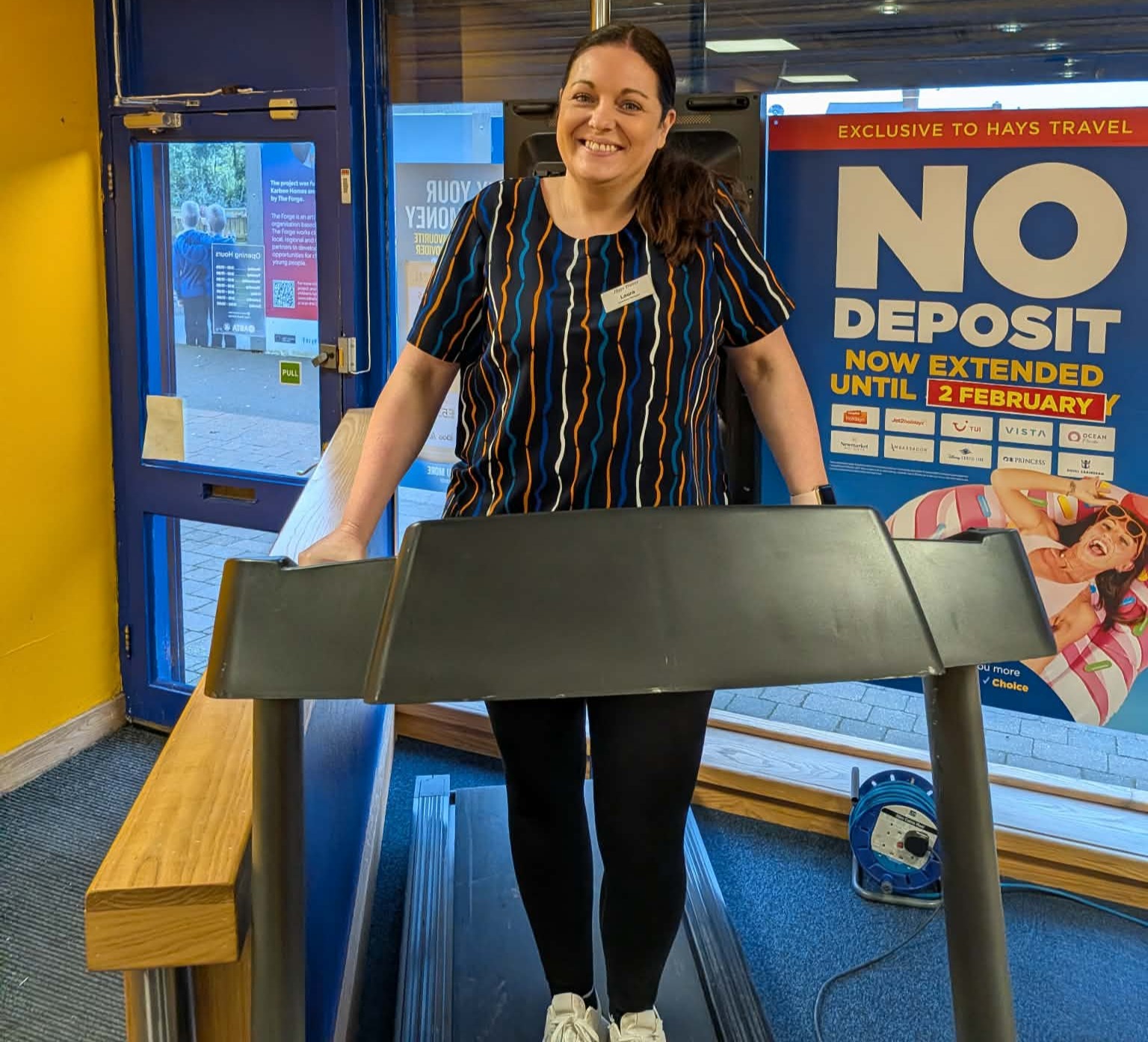“It went really well and we all took turns on the treadmill throughout the days – our customers donated in branch and every donation went into a prize draw to win a £100 Hays Travel voucher.”