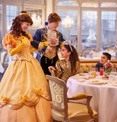 Be our Guest and dine inside a sparkling tribute to a tale as old as time. Inspired by the dazzling Hall of Mirrors, this breathtaking restaurant sets the stage for elegant French cuisine that’s as refined as it is delicious. Settle in for one of the most magical fine-dining experiences in all of Disneyland® Paris, where every course feels fit for royalty, and Disney Princesses and princes join you at the table.