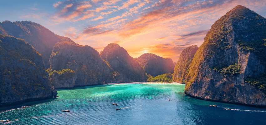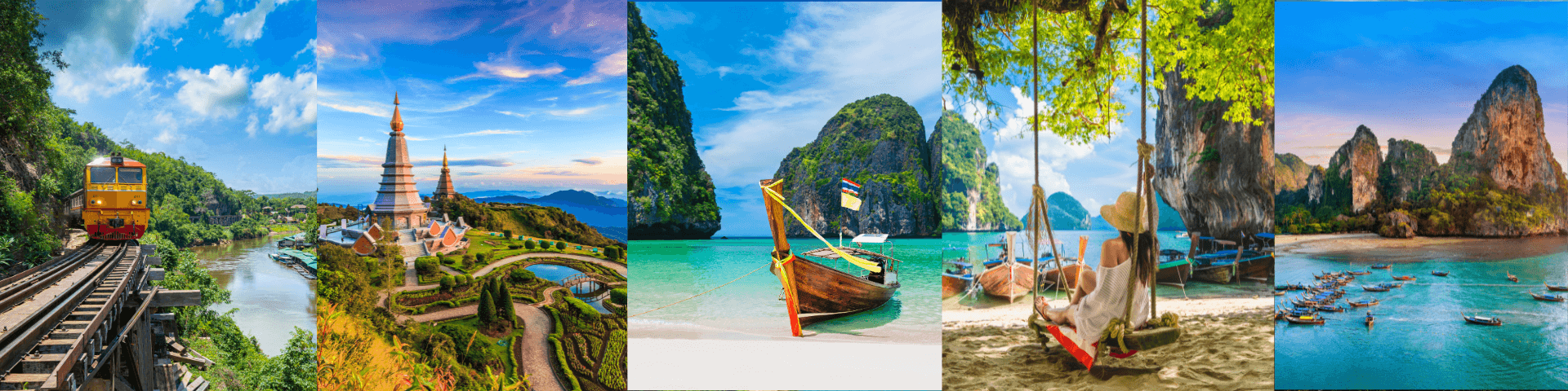 Popular destinations include Bangkok for culture and nightlife, Phuket and Koh Samui for beaches and luxury resorts, and Chiang Mai for temples, elephants, and mountain scenery. Don’t miss Krabi and the Phi Phi Islands for picture-perfect views.