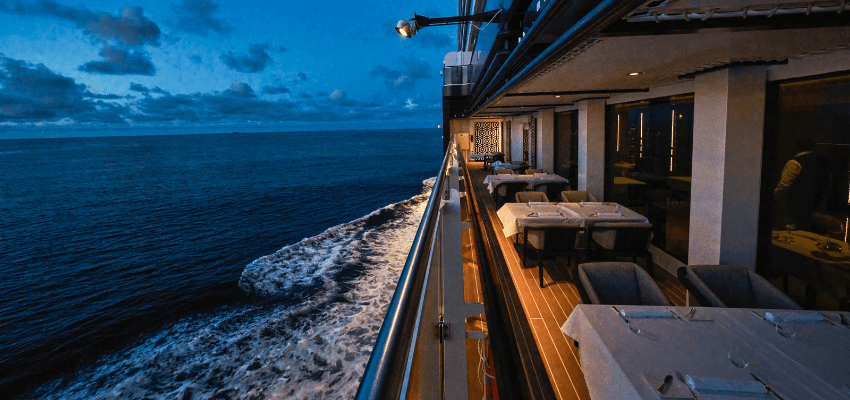 The ship’s pool areas were designed with both relaxation and indulgence in mind. The main pool deck offered panoramic views and plush loungers, ideal for soaking up the sun with a cocktail in hand. My favourite spot, though, was the infinity pool; peaceful, calming, and never overcrowded. Whirlpools and cabanas added to the resort-like atmosphere, and what impressed me most was how serene the spaces remained throughout the voyage, even on sea days.
