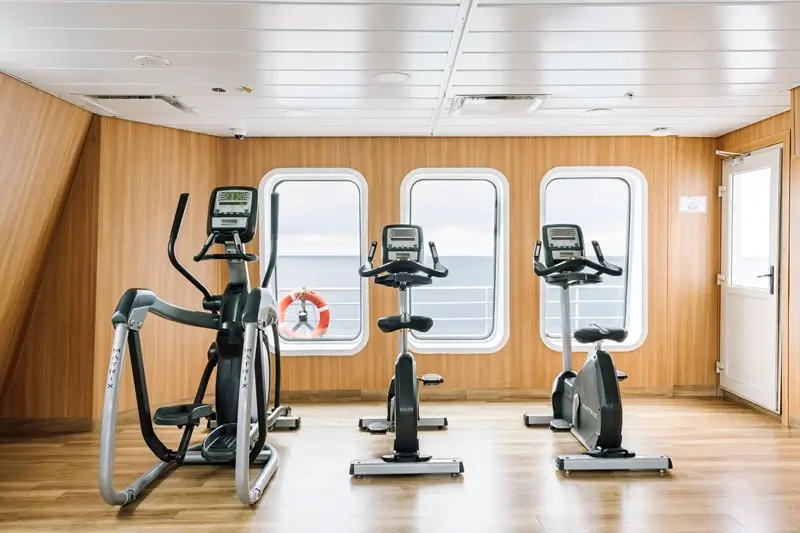 Whenever you feel the need to get your body moving, exercise facilities are on hand to get your pulse up. And whether you’re relaxing after a day of fascinating lectures, or a long hike, there’ll be plenty of opportunities to relax your body and mind. Our fitness center is equipped with yoga mats, set of weights, 2 treadmills, 2 stationary bikes, and an elliptical trainer for those guests who do not want to let their routine slide. For a nice relaxing time our two hot tubs with capacity for 5 guests each. Located on the Expedition deck are ideal.