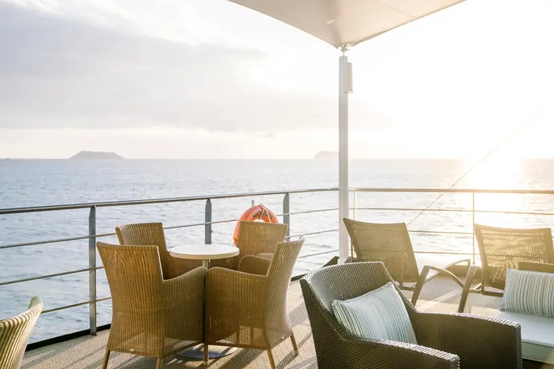 When you are exploring the Galápagos islands with us onboard the MS Santa Cruz II, you will enjoy a relaxed atmosphere in high quality surroundings. The small size - with a guest capacity of maximum of 90 allows for a cozy yet classy environment. You'll easily feel at home on board.