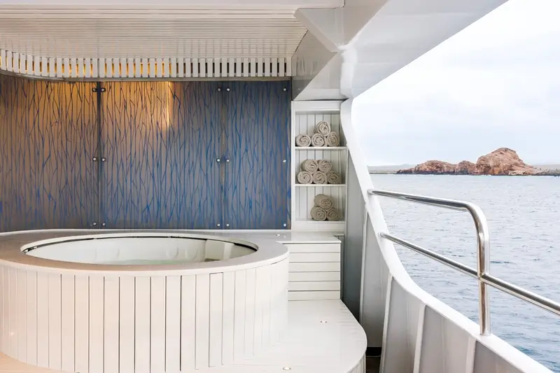This sleek, spacious ship has a layout that allows you to enjoy your cruise from start to finish. Enjoy delicious food in the elegant restaurant, increase your knowledge of the Galápagos Islands with your fellow travellers in the Science Centre or maybe mingle out on the multiple decks.