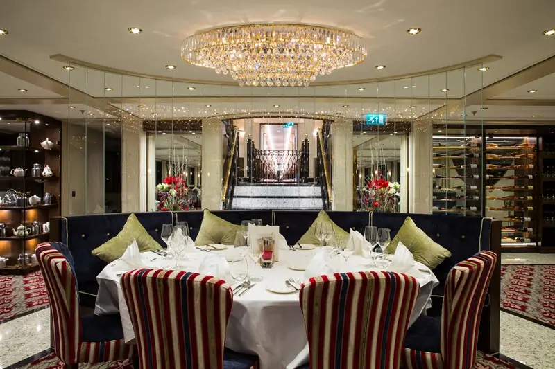 The Diamond Deck is where you will find the very heart of the ship - the superb panoramic observation lounge and bar; a lounge in every sense of the word, complete with plenty of comfortable leather armchairs and sumptuous sofas where you can sink into warmly colourful cushions in beautiful quality fabrics with a freshly made cup of tea. A thick wool carpet feels lovely underfoot and the tasteful contemporary lighting above creates a welcoming and refined ambience, further complemented by the discreet and intuitive service resplendent of the finest five-star hotels. So just sit back with your favourite cocktail and take in the truly mesmerising view. After a superb dinner in the restaurant perhaps it’s time for a digestif accompanied by the soothing tones of the ship’s pianist.