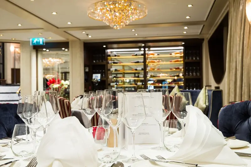 The stunning restaurant on the Main Deck serving buffet breakfast, buffet lunch and four-course dinner