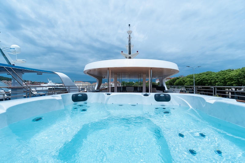 As you step on board, there’s an instant feeling of grandeur. With a maximum of 38 guests on board, your dedicated crew will be at your service throughout. Enjoy the spacious and stylish sun deck, discover a secluded spot to read a book, enjoy a relaxing dip in the hot tub or sit back, relax and unwind with a cool refreshing drink from the bar as you enjoy unimpeded panoramic views of the unspoilt landscapes of the Adriatic coastline. There’s a chance to enjoy a quick dip from the swimming platform in one of the secluded bays’ crystal clear waters.