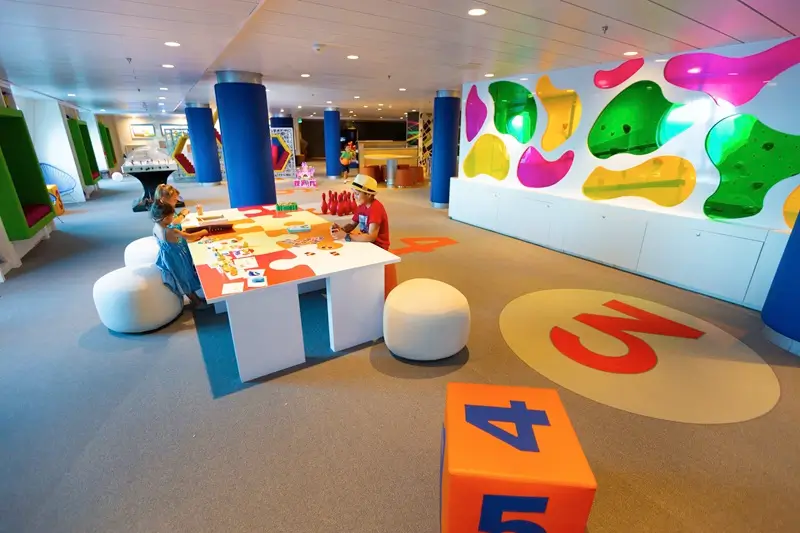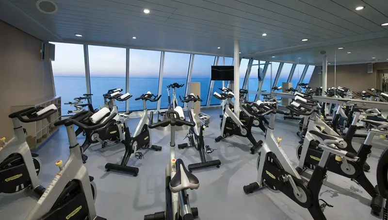 The ship features a fantastic array of health and fitness facilities including, a spa, a fitness centre, a rock climbing wall and much more.