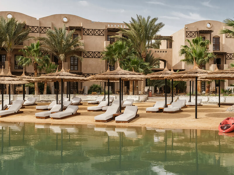 Explore the man-made lagoon city of El Gouna from the Cook’s Club El Gouna! Perched on the shores of Egypt’s Red Sea; this Egypt adult-only hotel perfectly combines beach life and activities on land and sea with contemporary guest accommodation, tasty culinary experiences, and vibrant events.