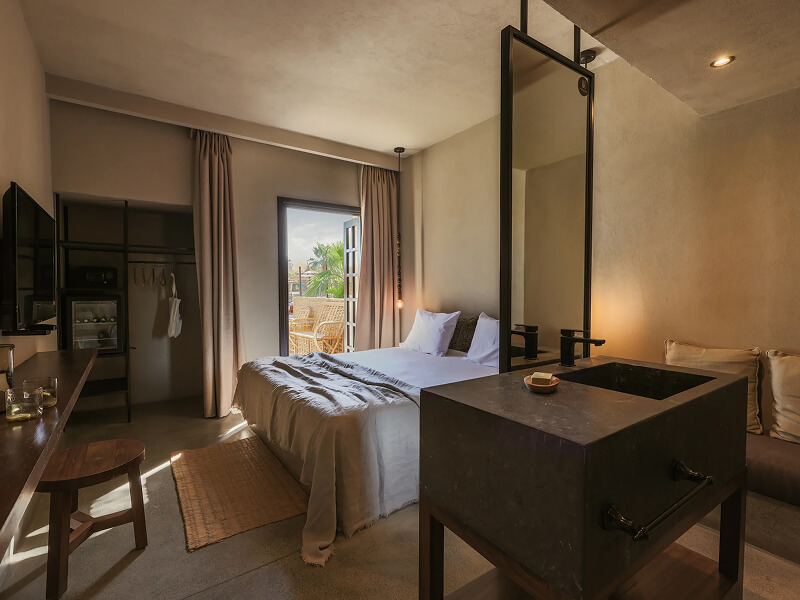 The hotel offers 144 stylish, Bedouin‑inspired rooms spread across six categories, from cosy Standard King Rooms to premium lagoon‑view options with spacious terraces. Standard King Rooms provide everything you need for an easy, comfortable stay, including individually controlled air‑conditioning, complimentary Wi‑Fi and a safety deposit box, plus a minibar for an extra charge. Each room features a balcony overlooking the gardens and a modern bathroom complete with shower, hairdryer, and soft bathrobes for a relaxed, laid‑back finish to your day.