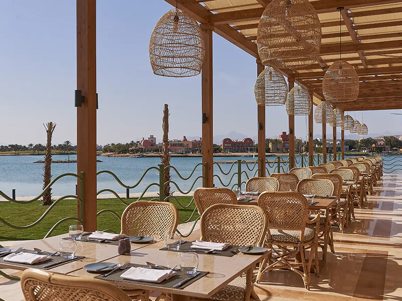 The Steigenberger Golf Resort serves up everything from relaxed poolside bites to refined international dining, with Fairways offering lavish buffets and live cooking stations overlooking the lagoon. The Lagoon Terrace and Green Bar are perfect for daytime dishes and refreshing drinks, while Harumaki brings an elegant Japanese experience with teppanyaki, sushi, and sake. Guests can also unwind at a choice of bars, including the Lobby Bar, Hole 19, Beach Bar, and Golf View. Daily games, light sports, and activities add a lively touch to every stay.