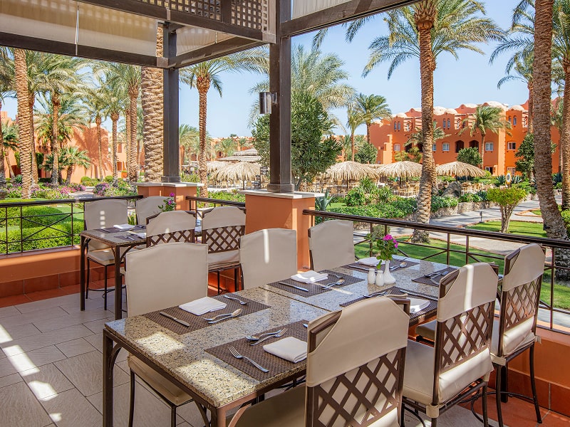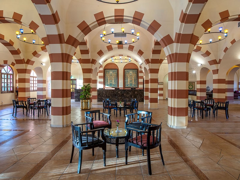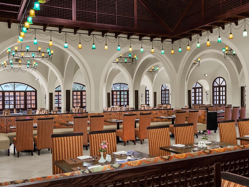 El Hambra serves buffet-style dishes with local and international flavours for breakfast, lunch, and dinner. Guests can also enjoy the Dine-Around Program, offering Asian fusion at Makai Tukai, Italian favourites at Nino’s, Oriental delicacies at Sofra, grilled meats at The Grill, Mediterranean cuisine at Beach Restaurant, Indian specialities at Amaya, and light bites at Aqua. Relax at El Shamousa Pool Bar, Beach Bar, or Lobby Bar, before evening entertainment featuring folk culture, live music, and animation team performances.