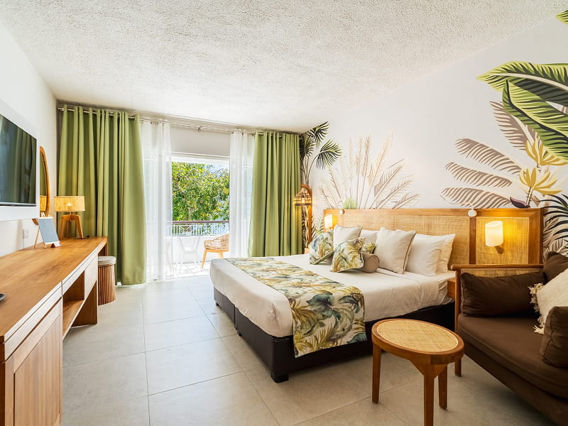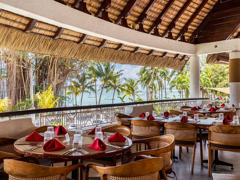 Le Boucanier, the main restaurant, offers buffet and live cooking stations under a charming thatched pavilion. For a romantic à la carte experience, Indian Tree Top Restaurant serves chef specials like seafood platters and spicy Indian dishes. Finger’s Restaurant provides light lunches and snacks including sandwiches, satay, salads, and pizza, plus early evening drinks. Oasis Bar, nestled between two pools, serves Mauritian Phoenix beer, spirits, wines, fresh juices, mocktails, and cocktails like the signature Ti Punch. It also hosts afternoon tea and evening aperitifs in a relaxed, tropical setting.
