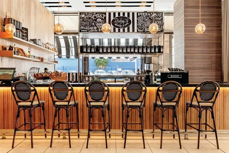 The modern Copa Restaurant serves up delicious, tasty, and simply irrestible cuisine from an a la carte menu at lunch, dinner, and in-between; complemented by weekly specials, bar snacks, seasonal three-course menus, drinks, and cocktails. Ruby's Bakery and Café offers freshly baked pastries, bagels, and cakes; tempting wraps and salads, and healthy pressed juices at breakfast and lunch; uniquely blended coffee, smoothies. and soft and alcoholic drinks; and a dinner menu of appetisers, sharing dishes, salads, and sides.