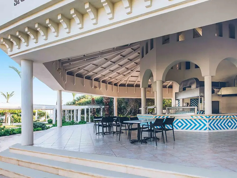 Main Restaurant serves fresh local and international dishes from morning to night, offering everything from traditional briks and sweets to crisp salads. Sofra brings authentic Tunisian flavours to your evening with couscous, tagines, grilled fish, and more. The Snack Bar keeps you fuelled with tasty grilled favourites, while the Pool Bar delivers refreshing drinks and light bites without leaving the water. Enjoy classic Tunisian tea at Café Maure, or unwind in the Lobby Bar with cocktails, wines, and soft drinks.