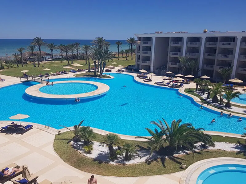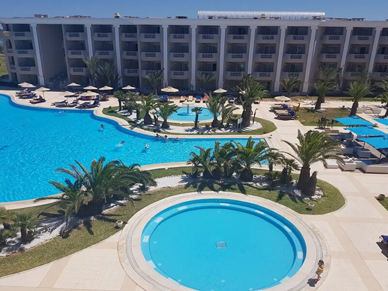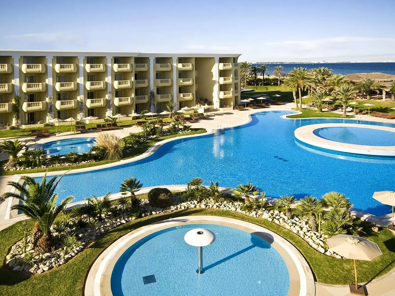 Royal Thalassa Monastir offers outdoor and indoor pools, a private beach, sun terraces, three restaurants, four bars, spa, boutique, and 24-hour reception. Activities include water sports, tennis, mini-golf, beach volleyball, darts, and a kids’ club. Rooms feature modern comforts, and nearby golf courses add to the appeal. Some services and amenities may incur extra charges.