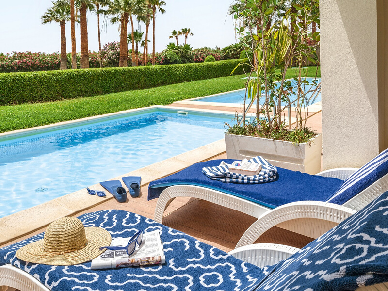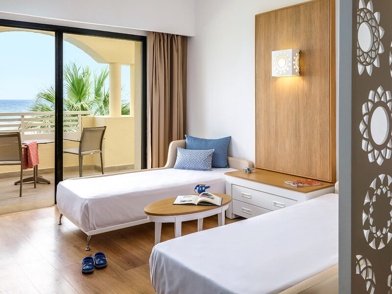 TUI BLUE Manar has a total of 333 modern guest units across eight categories; ranging from Double Rooms Without Balcony through to Family Rooms Sea View. Double Rooms Without Balcony feature a garden or pool view, twin beds or queen-size beds and a sofa bed, mini-fridge with one bottle of water on arrival, complimentary safe, Wi-Fi, television, telephone, direct access to the private swimming pool (shared by three bedrooms), air-conditioning in high season, and bathroom with shower, bathtub, and hairdryer.