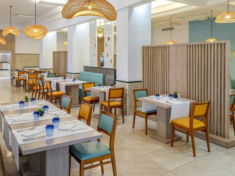 Jasmine Restaurant and Over Pool Terrace are your daily ports of call at breakfast, lunch, and dinner for a buffet-style feast; show cooking and Gala and Tunisian Theme Nights add to the menu. Light bites are served during the afternoon at the Snack Bar. Taste American classic fare like burgers, barbecue, and steaks from wood-fired grills at the a la carte Baia Lounge*. Italian Kitchen* opens in the summer months for authentic Italian fare including pizza and pasta dishes. Lobby Bar, Swim-up Bar, and Beach Bar are your pit-stops for a wide selection of drinks as part of the All In Soft concept including soft drinks, coffee, tea, and juice; and also fresh orange juice*, alcoholic drinks*, draught beer*, wine*, etc. Coffee Shop serves hot drinks, cakes, and sweet treats. The evenings bring live music, silent discos, interactive game shows, local shows, party nights, and more. *incur a charge