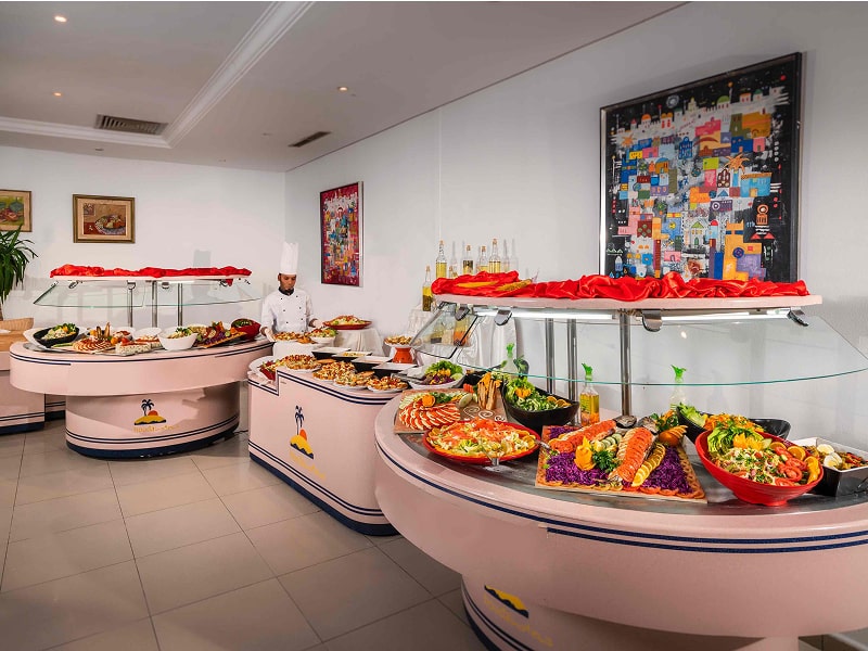 Dar Elezz Restaurant serves up delicious buffet-style cuisine with a local Tunisian and international flavour at breakfast, lunch, and dinner. Snack Bar Restaurant is your pit-stop for an open-air buffet, fresh pizzas, and delicious mixed grills. Stop by the Beach Bar for hot and cold drinks and culinary delights. Lobby Bar lets you unwind and socialise with your fellow guests as you sip your favourite tropical cocktail or ice-cold beer. Shows, live music, a disco, and themed nights add to the evening vibe.