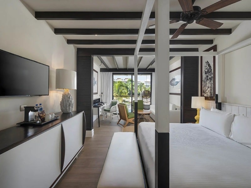 At Ocean Riviera Paradise, the spacious rooms and suites are designed for comfort and calm, featuring air conditioning, plush beds and modern ensuite bathrooms with rainfall showers and hydro massage tubs. As standard, the suites come with a bedroom, living room and outside terrace or balcony area. Thoughtful touches like complimentary minibars, coffee machines, 40” flat-screen TVs, Wi-Fi and elegant decor ensure a restful retreat after sun-soaked days.
