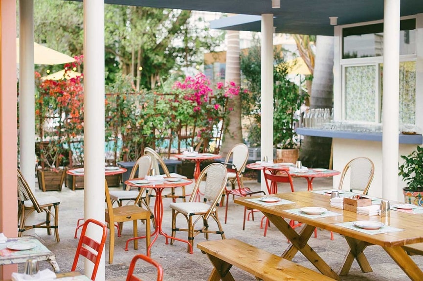 27 Restaurant, set in a historic house by the courtyard, offers a communal dining salon with fresh local ingredients, raw bar, garden dishes, shared plates, natural wines, and desserts. The Eagle Room opens nightly from 20:00 to late with cocktails, entertainment, and Happy Hours. Broken Shaker, a backyard oasis, serves snacks, bites, and raw bar options alongside mocktails, spirits, wines, beers, bubbly, and inventive cocktails crafted with herbs, spices, fresh produce, and exotic infusions.