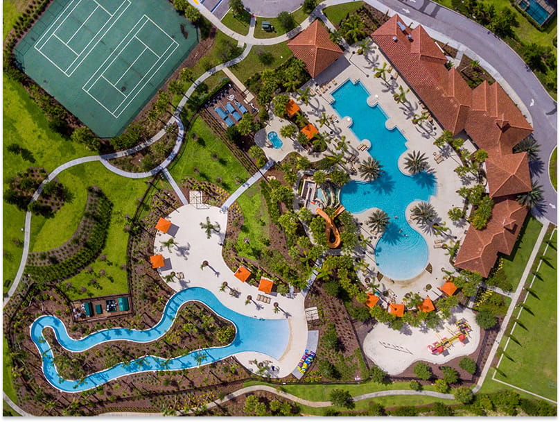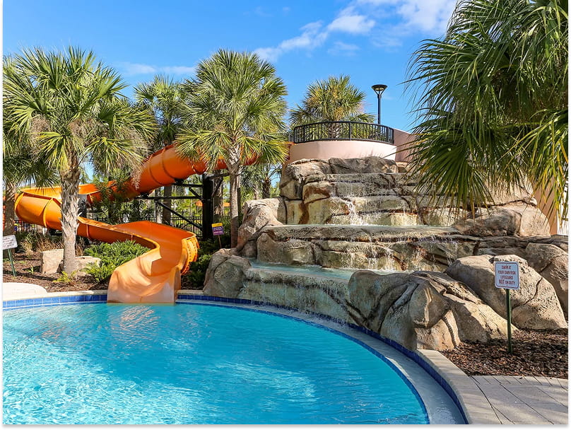 ✓ Resort-style pool complex with waterslide and lazy river