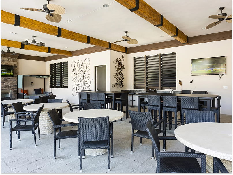 Solterra’s resort facilities include a grand clubhouse, one restaurant and bar, one large resort-style swimming pool, lazy river, waterslides, poolside cabanas, a fitness centre, spa amenities, tennis courts, walking trails, children’s play areas, and social spaces designed for both relaxation and fun.