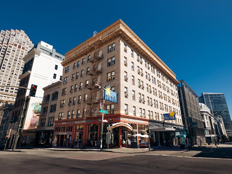 Hotel Triton sits at 342 Grant Avenue where Union Square, Chinatown and the Financial District meet. This boutique hotel offers 140 rooms, all with Carrara-marble bathrooms and deluxe Frette bedding. It also features art-filled spaces, pet-friendly policies (no breed or weight restrictions), and complimentary amenities like coffee and lobby wine hour.