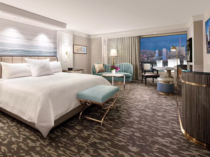 ✓ Features luxurious rooms with lake or Strip views