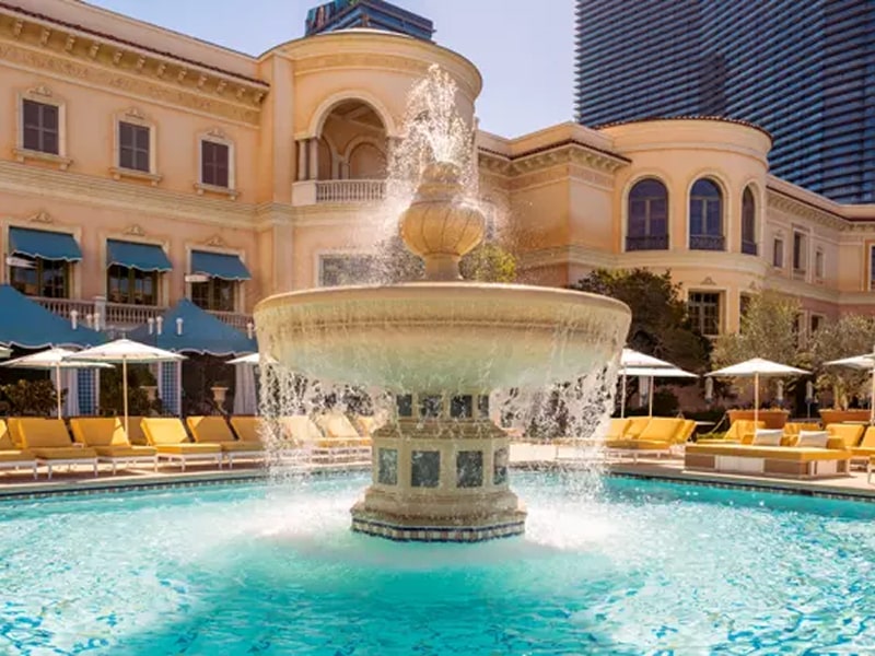 ✓ Features luxurious rooms with lake or Strip views