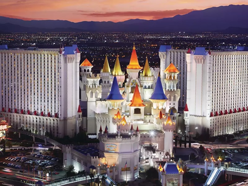 Excalibur Hotel & Casino delivers a fun-filled Las Vegas experience with its medieval castle theme and welcoming atmosphere. Guests can enjoy six themed restaurants, an entertainment lounge, and the famous Tournament of Kings dinner show. The resort features a large casino, relaxing spa, fitness center, and sparkling pool area with cabanas. Explore Castle Walk for boutique shopping and medieval-style décor, or visit Fantasy Faire for carnival games and rides. With diverse dining, entertainment, and leisure options, Excalibur offers something for everyone. Some amenities may incur additional charges.