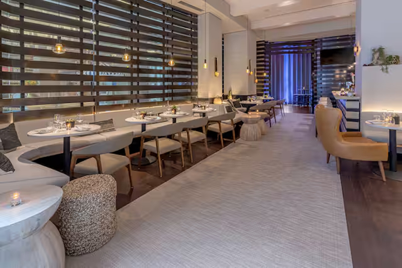 Hilton New York Fashion District offers excellent dining and entertainment, including Chelsea Table + Stage, serving upscale American cuisine for breakfast, brunch, and dinner with live music performances. The Sandbar Rooftop provides handcrafted cocktails, pinsa‑style pizzas, and charcuterie with stunning skyline views, creating a vibrant social atmosphere for guests.