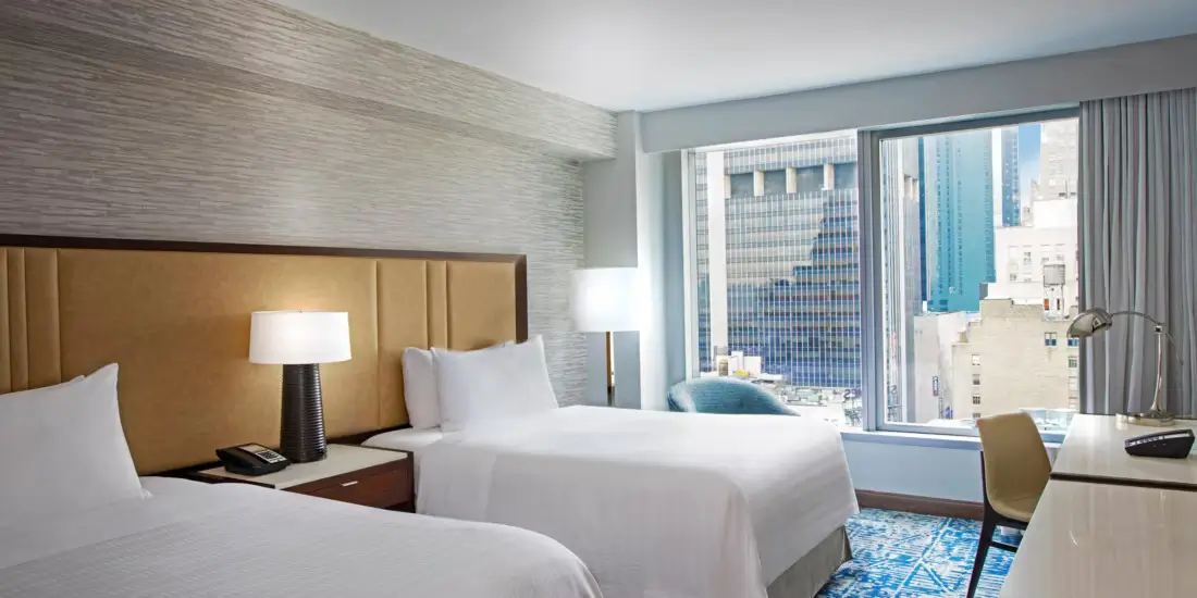 The hotel offers a 24-hour fitness centre, on-site restaurant and bar, concierge services, meeting and event spaces, valet parking, room service, free Wi-Fi throughout, accessible facilities, elevator access, and a sleek lobby lounge, delivering a seamless blend of convenience, style and Manhattan sophistication right in Times Square.