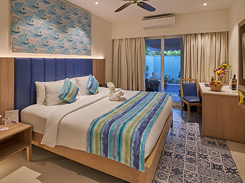 Royal Orchid Beach Resort & Spa has a total of 73 guest units across three categories; ranging from Club Rooms through to the Royal Suites. The Club Rooms feature a soothing décor with colourful touches and are kitted out with a balcony with pool or garden views, LED satellite television, complimentary Wi-Fi for two devices, fridge/minibar with a 330ml bottle of Goan Port Wine, iron/ironing board, electronic safe, 24-hour room service, and a bathroom with toiletries and hairdryer.