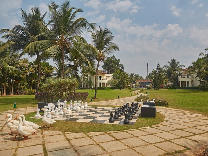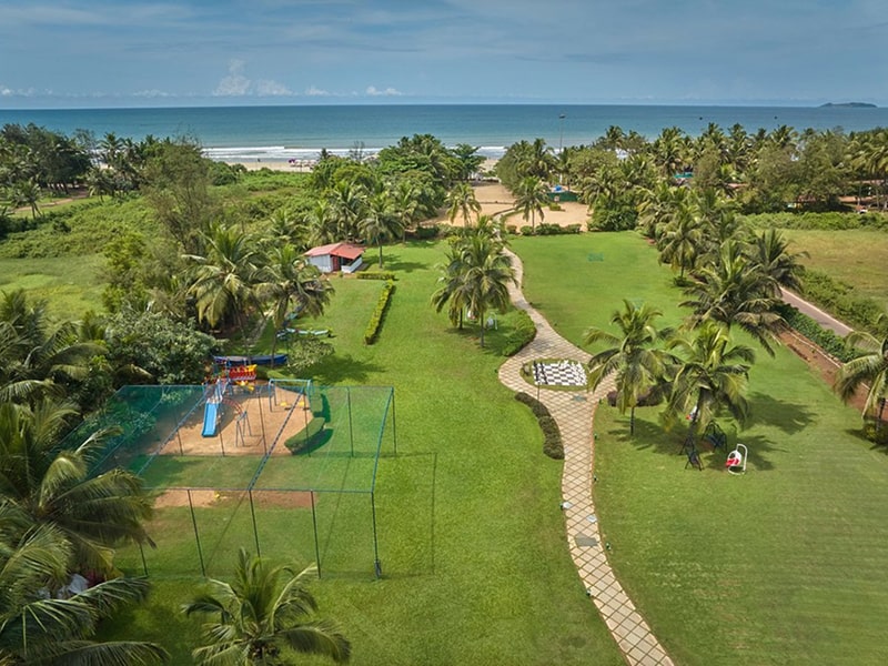 The facilities at this luxury Goa hotel include: a curvy swimming pool with a kids’ pool and sun terrace with recliners, direct access to a private beach, water park with a separate kids’ play area, gardens, three restaurants/bars, karaoke lounge, spa with massages and therapies, fitness centre with weight training and cardio equipment, gaming zone with PlayStation 5 and games, Carrom area, giant chess, EV charging station, and a 24-hour reception. NB: Some services and activities may incur a charge.