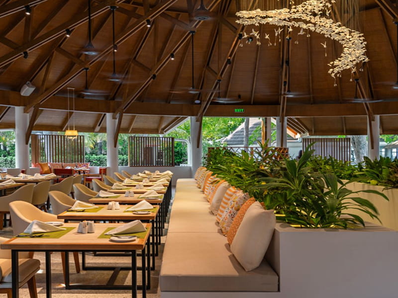 Bandos Maldives offers a varied selection of food, drink and entertainment to suit every mood. Guests can enjoy international buffet dining at The Gallery, authentic Thai dishes at Koon Thai, and round‑the‑clock casual meals at Sea Breeze Café, set over the lagoon. Evenings come alive with live music and events at Sand Bar, while Sundowners Bar provides cocktails with spectacular sunset views. Entertainment continues with a swim‑up pool bar, nightly shows and a wide range of activities for families, couples and groups.