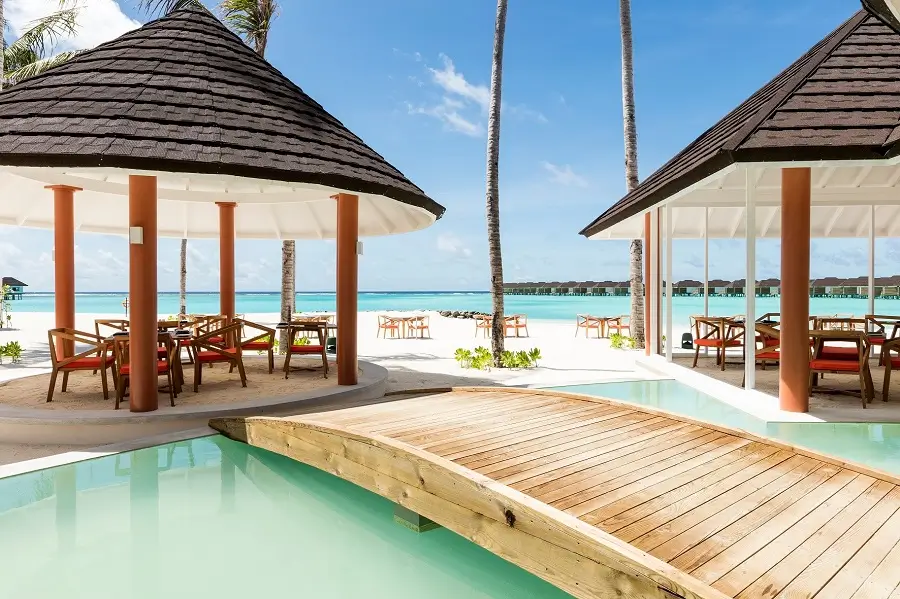 Dining at Sun Siyam Olhuveli offers a mix of casual beachfront bites and elegant fine dining under the stars. Enjoy international cuisines, from freshly caught seafood and Asian dishes to Mediterranean classics and Maldivian specialties. Bars across the island serve refreshing cocktails, ideal for poolside lounging or sunset toasts. Evenings bring laid-back entertainment, with live music by talented local artists, from soft acoustic tunes to upbeat tropical melodies. For a lively vibe, DJs spin classic hits, perfect for barefoot dancing in the sand, creating a perfect balance of relaxation and island energy.