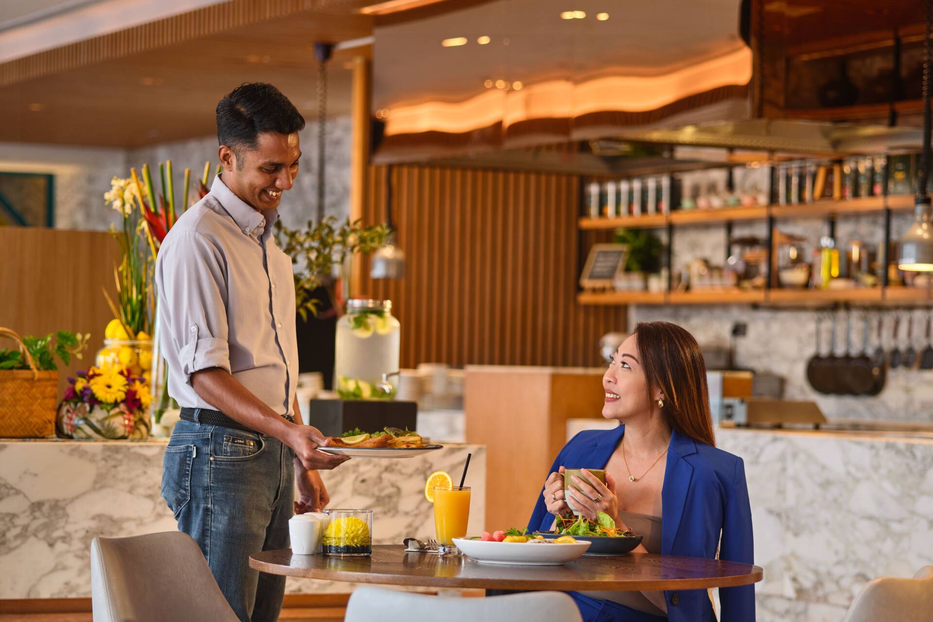 Onsite dining at the hotel is relaxed and flavourful at Together & Co., where international favourites meet local Singaporean dishes. Start the day with a generous buffet breakfast featuring freshly prepared options, then return for casual lunches or a la carte evening meals inspired by global cuisine. Beyond the hotel, Little India’s colourful streets offer endless dining adventures, from authentic curry houses to street food favourites. After dinner, take a twilight stroll through bustling markets or unwind with rooftop drinks overlooking the city skyline.