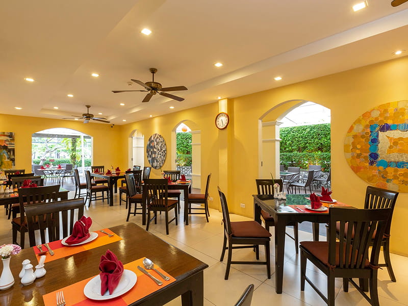 AH MA HOUSE Restaurant serves Asian and international cuisine in an elegant colonial-style setting from 06:30 to 23:30, with the breakfast buffet a standout feature. Guests can also sample traditional Thai cuisine at Tamnak Bhrachandra Restaurant at the nearby sister property, The Village. The relaxed Pool Bar is open from 10:00 to 19:00, offering light snacks, cocktails, beer, soft drinks, a swim-up bar, and a daily Happy Hour from 16:00 to 18:00. In-room dining is available from 06:30 to 22:30, serving Thai and international favourites.