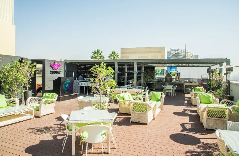 The Elite Byblos Hotel offers a variety of dining options to tantalise your taste buds. Stop at the Monarch Coffee Shop any time for a spot of world-class all-day dining. Indulge in a taste of the Med at Mediterraneo Bistro & Restaurant where you can enjoy authentic dishes that fuse classic Mediterranean flavours with a fine-dining twist. Head to The Brooklyn Bar, a bustling sports bar offering an all-American diner menu- the perfect spot to catch a big game, play bingo, take part in the weekly quiz night or play a round of pool and darts. For a glittering evening pop up to the Zodiac Rooftop Lounge for a light bite, frozen cocktails or shisha by the pool with stunning skyline views.