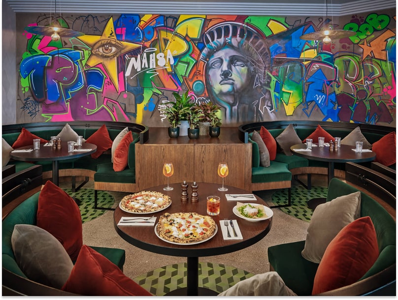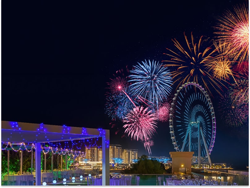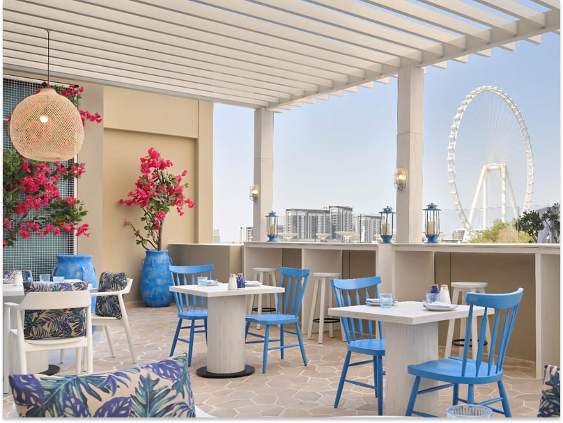 Guests can savour global flavours at Aqua’s themed nights, enjoy Italian classics at Il Motto, and relax with drinks at Offside Sports Bar. OIA Greek Restaurant offers poolside dining with Santorini vibes. Entertainment includes live music, festive brunches, and rooftop celebrations with stunning views of Ain Dubai, creating a vibrant and memorable atmosphere.