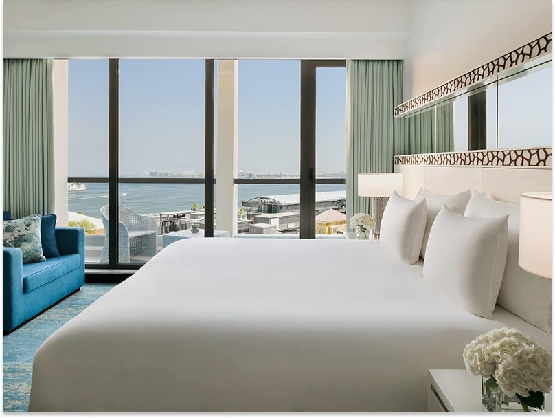 Rooms at JA Ocean View Hotel feature private balconies with sea views, modern décor, and comfortable furnishings. Each room includes air conditioning, complimentary Wi-Fi, flat-screen TVs, minibars, and tea/coffee-making facilities. Guests enjoy spacious bathrooms with walk-in showers, premium toiletries, and daily housekeeping. Family-friendly options and accessible rooms are also available for added convenience and comfort.