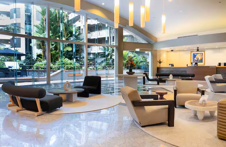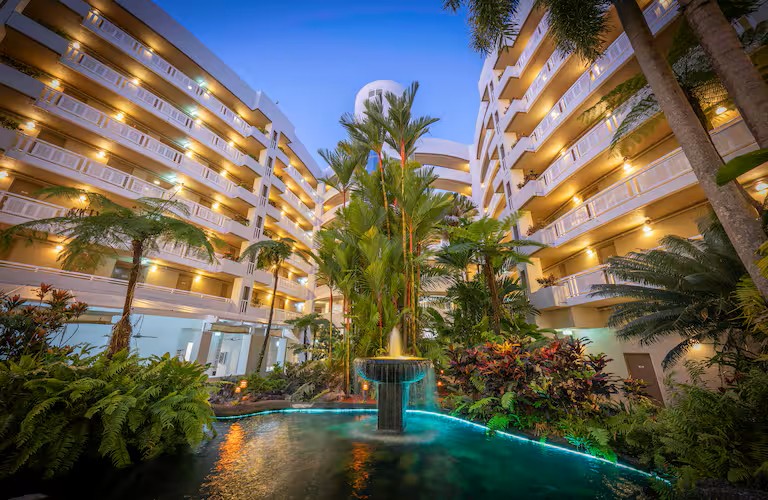 Enjoy sweeping Coral Sea views from our oceanfront hotel, where contemporary comfort meets the natural beauty of Cairns. Set amid landscaped tropical gardens, the property offers a tranquil retreat just steps from the city’s highlights, including Cairns Aquarium, Cairns Art Gallery, the lively Esplanade Lagoon, and the vibrant city center. Conveniently located only five kilometers from Cairns Airport, the hotel is both easily accessible and perfectly positioned for exploring the region. With a choice of inviting restaurants and bars, a 24-hour fitness center, and relaxing spaces to unwind, every detail is designed to complete your tropical escape. Whether you’re here for adventure, relaxation, or a little of both, our oceanfront setting provides the ideal base for your Cairns experience.