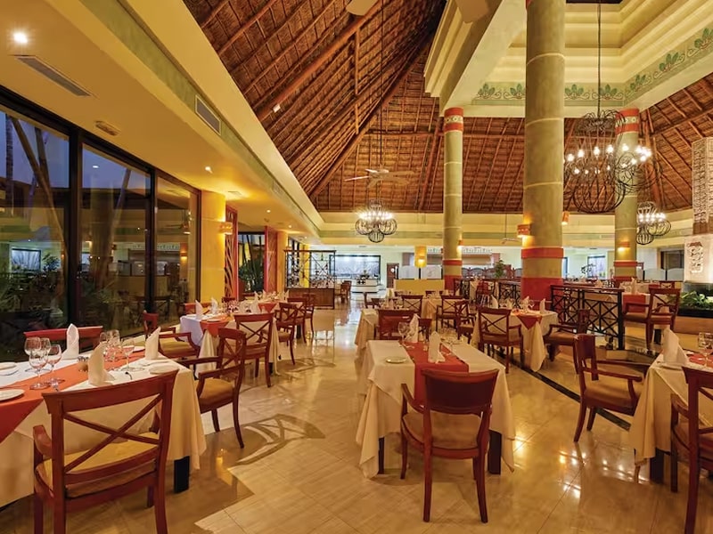 Bahia Principe Grand Coba offers international buffets, nine à la carte restaurants with global cuisines, and a variety of pool, beach, and lounge bars serving drinks and snacks. Enjoy sea-view dining, a 24-hour snack bar, and evening entertainment including live shows, music, and karaoke. Adults can unwind at La Rancherita nightclub with complimentary drinks, while families enjoy a vibrant, all-inclusive experience in a luxurious Mexican resort setting.