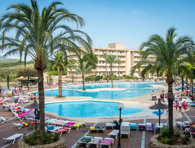 The sunny pool area is a welcome spot to spend the day; you can soak up a few rays by the water's edge while the kids have fun in their own pool, at the mini club, or on the nearby playground. Get active with a game of tennis or join in with an aerobics session. Why not hop on the Calas Express and take a leisurely tour around Calas de Mallorca?