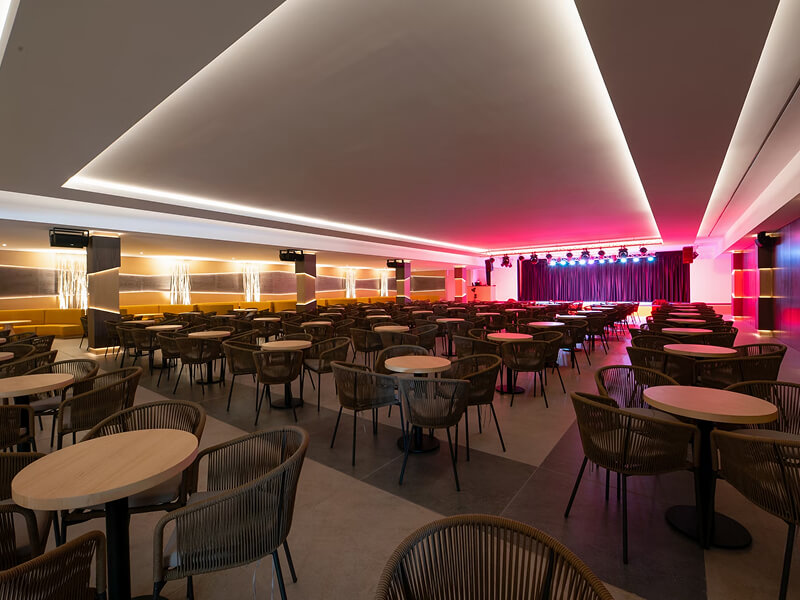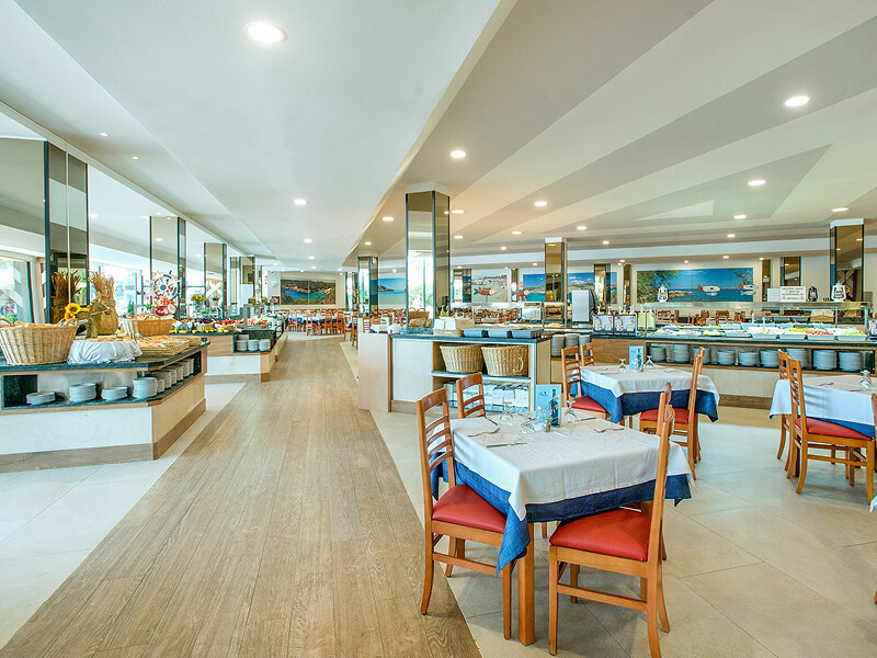 The main restaurant serves buffet-style meals at breakfast, lunch, and dinner, with local and international dishes on the menu. There is also an Italian Pizzeria Restaurant that opens for freshly-cooked pizzas in the summer months. Light bites and snacks are also available between meals and in the evening from the snack bar. The pool bar and bar cafeteria both offer a wide selection of hot and cold drinks and cocktails. The evening entertainment includes a mini disco for children and also family-friendly shows.