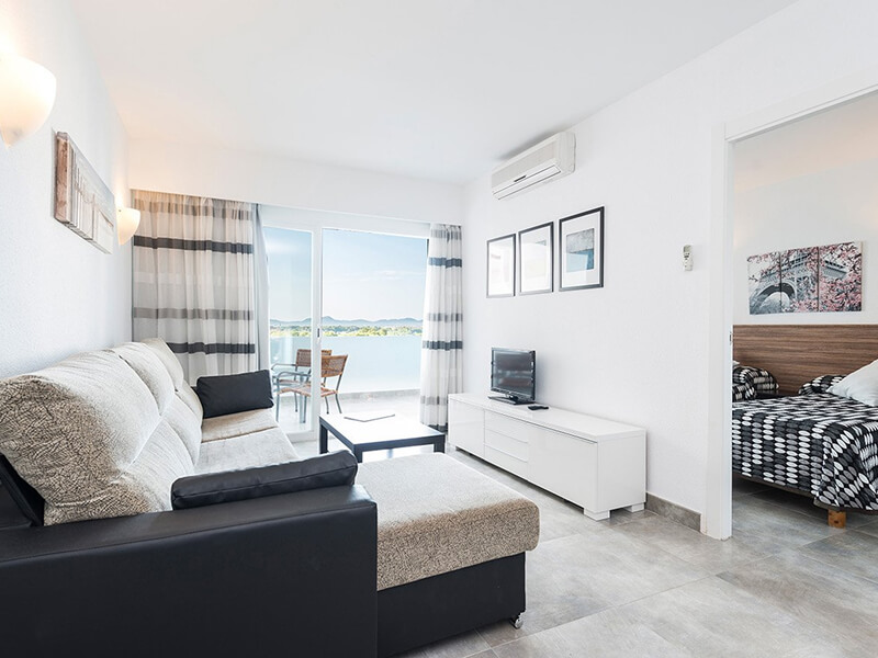 This Alcudia holiday complex has a total of 167 modern guest units; comprising Studios, Studios Pool View, 1 Bedroom Apartments Pool View, 2 Bedroom Apartments, and Superior 2 Bedroom Apartments. Studios are open-plan and kitted out with a kitchenette, twin single beds or a double bed and a sofa bed, lounge area, bathroom with shower, terrace, and flat-screen satellite television.