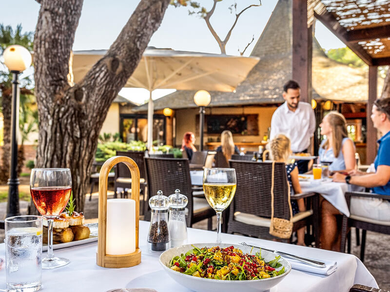 The Restaurant offers a tempting mix of local, international, and family favourites, complete with a children’s buffet and baby food preparation area. A la carte choices include the family‑style Taverna, The Green & Grill with its fresh grilled dishes, La Bambola for classic Italian cuisine, and Garden BBQ serving freshly cooked delights. Snack Bar provides light bites, while Thea’s Coffee Shop offers speciality coffees, juices, and pastries. Pool Bar and The Bar serve a wide range of drinks. Evenings bring lively entertainment with karaoke, live music, dancing, and resident shows.